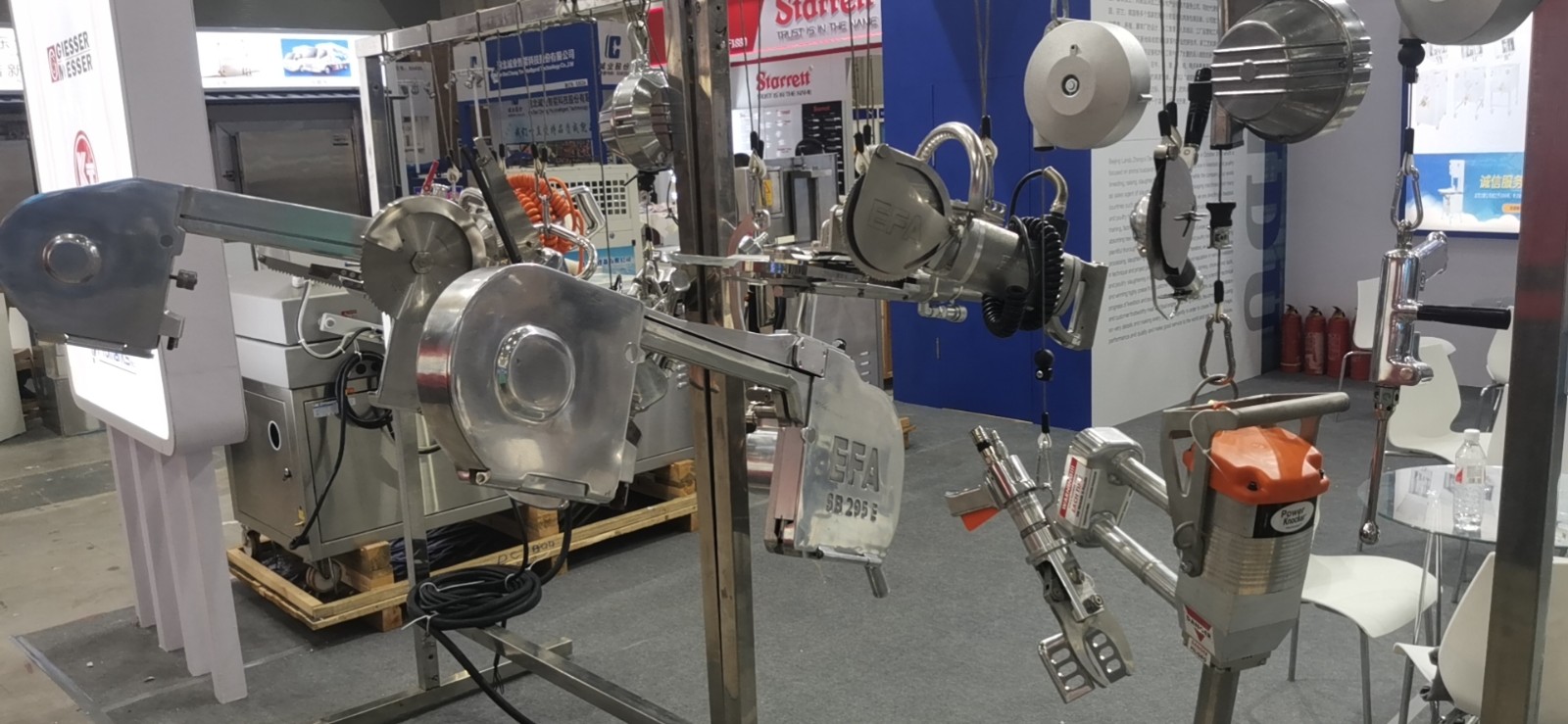 劈半鋸,開胸鋸,液壓剪,擊暈槍,鋸骨機,去筋膜機,收縮箱,包裝機,鮮肉嫩化機,絞肉機,碎肉機,開胸剪,四蹄分鋸。各種型號屠宰刀具,圍裙,刀鞘,不銹鋼手套等。